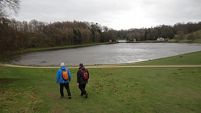 The walkers were amazed to find giant ornamental lakes within Studley Royal as they continued their search for bridges |