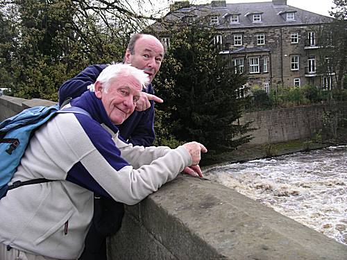 | The walkers were amazed by the flooded River Wharfe, as they safely crossed the treacherous waters at Harwood Bridge |