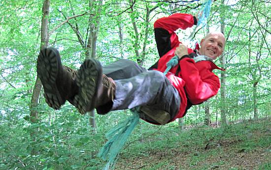 Showing incredible bravery, Mark taught his Dad to swing through the trees in Hackfall Woods |