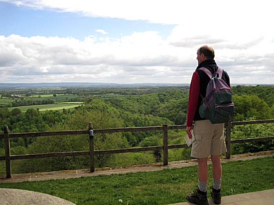 The walkers tried to spot the Shooting Lodge near the top of the hill, where they earlier enjoyed their Pork Pie Can you see it? |