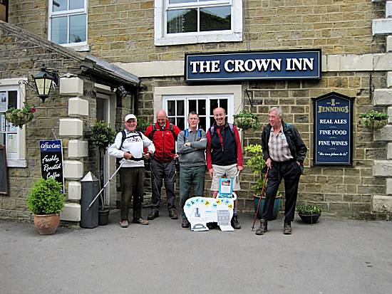 The walkers enjoyed much Jennings "Tom Fool" and "Ringwood Ale", during their visit to the Crown Inn at Grewelthorpe. Small portions of chips completed their lunchtime experience. |
