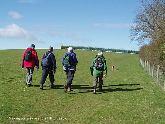 As the walkers set off they knew that they were getting close to Cliff's wall building site. Their pace gathered as they got closer!! |